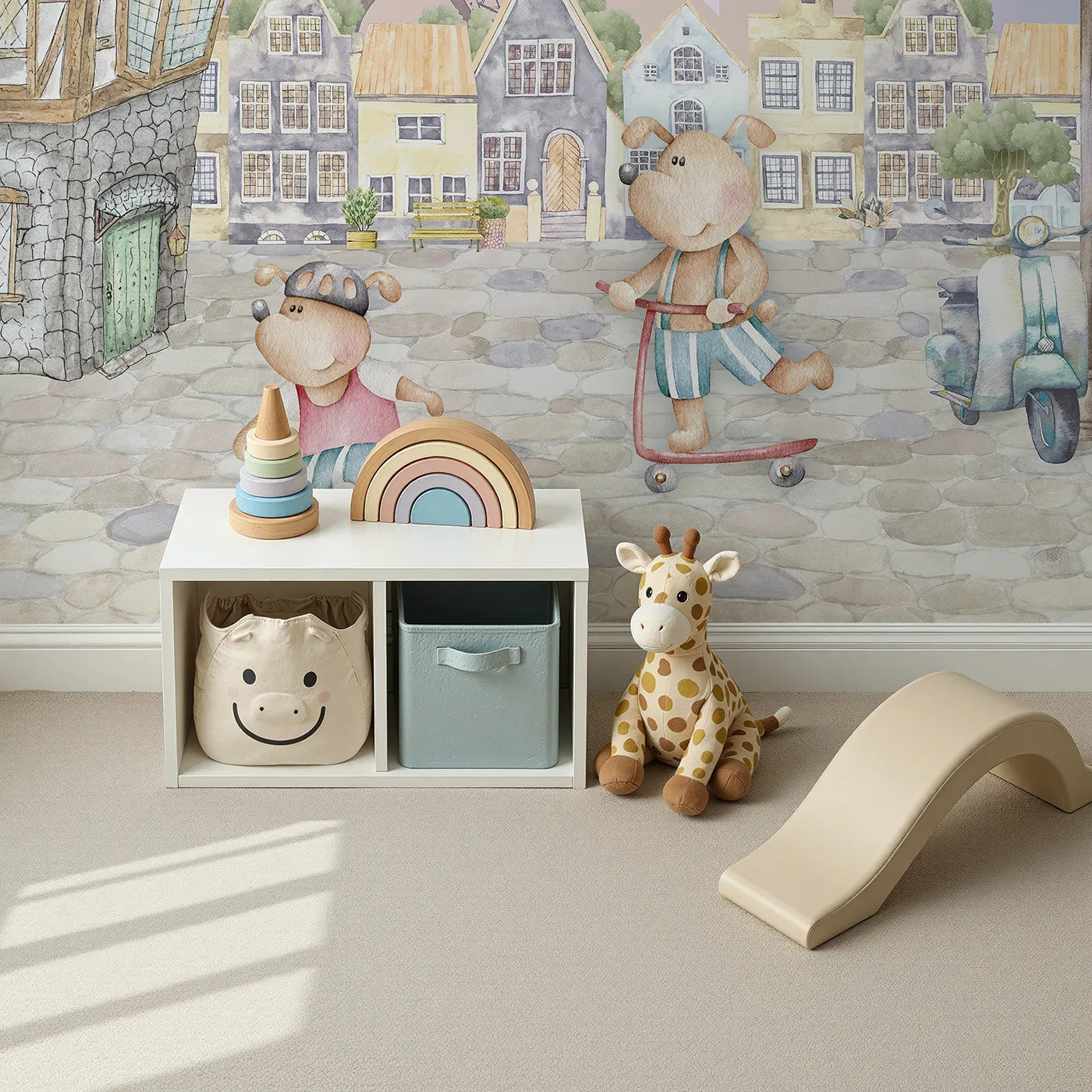 This beautiful kids wallpaper makes a wonderful accent wall for a whimsical and stylish nursery or playroom. Our renter-friendly, peel and stick murals are designed for an easy install, helping you create a magical space with ease. All our murals are printed with GREENGUARD Gold Certified inks.