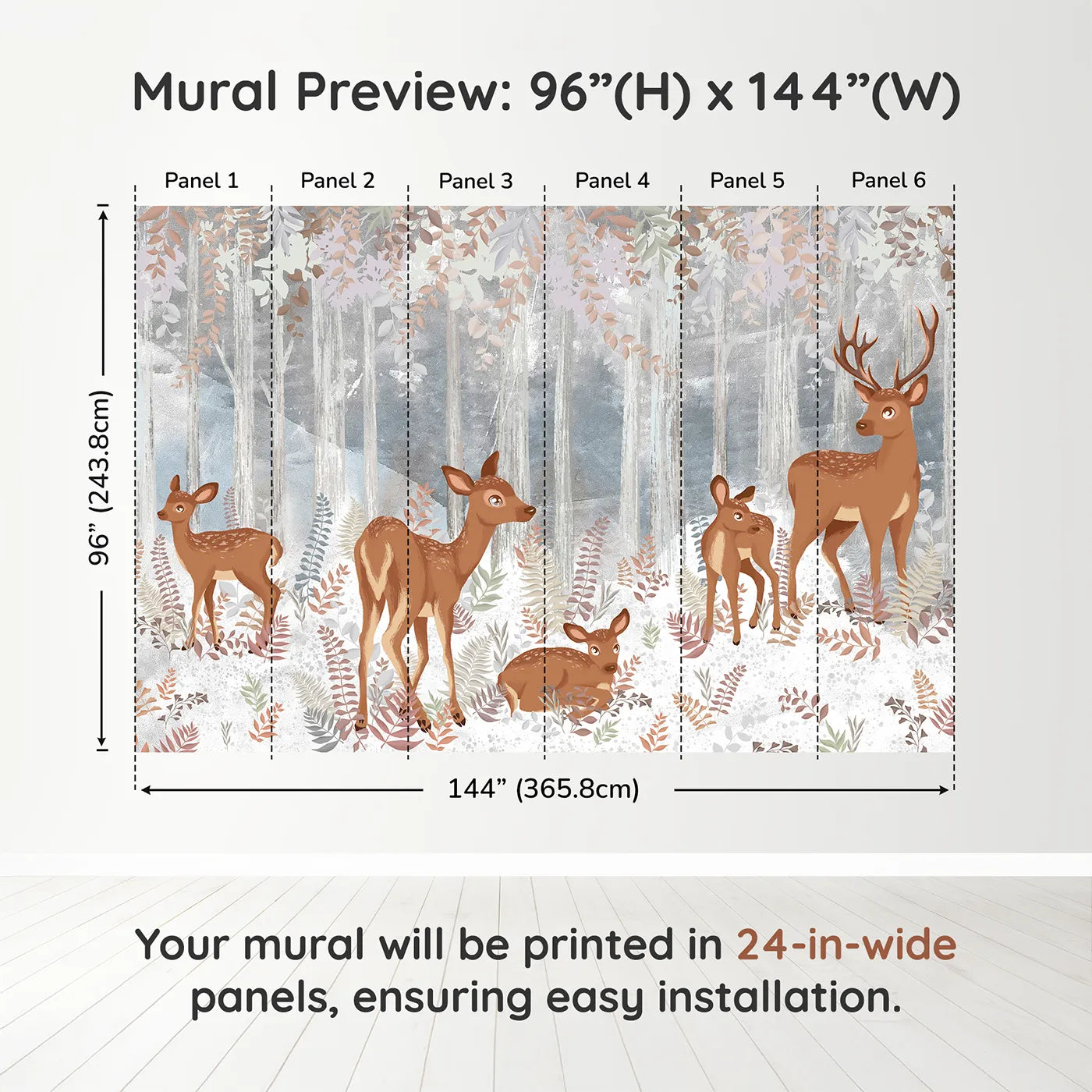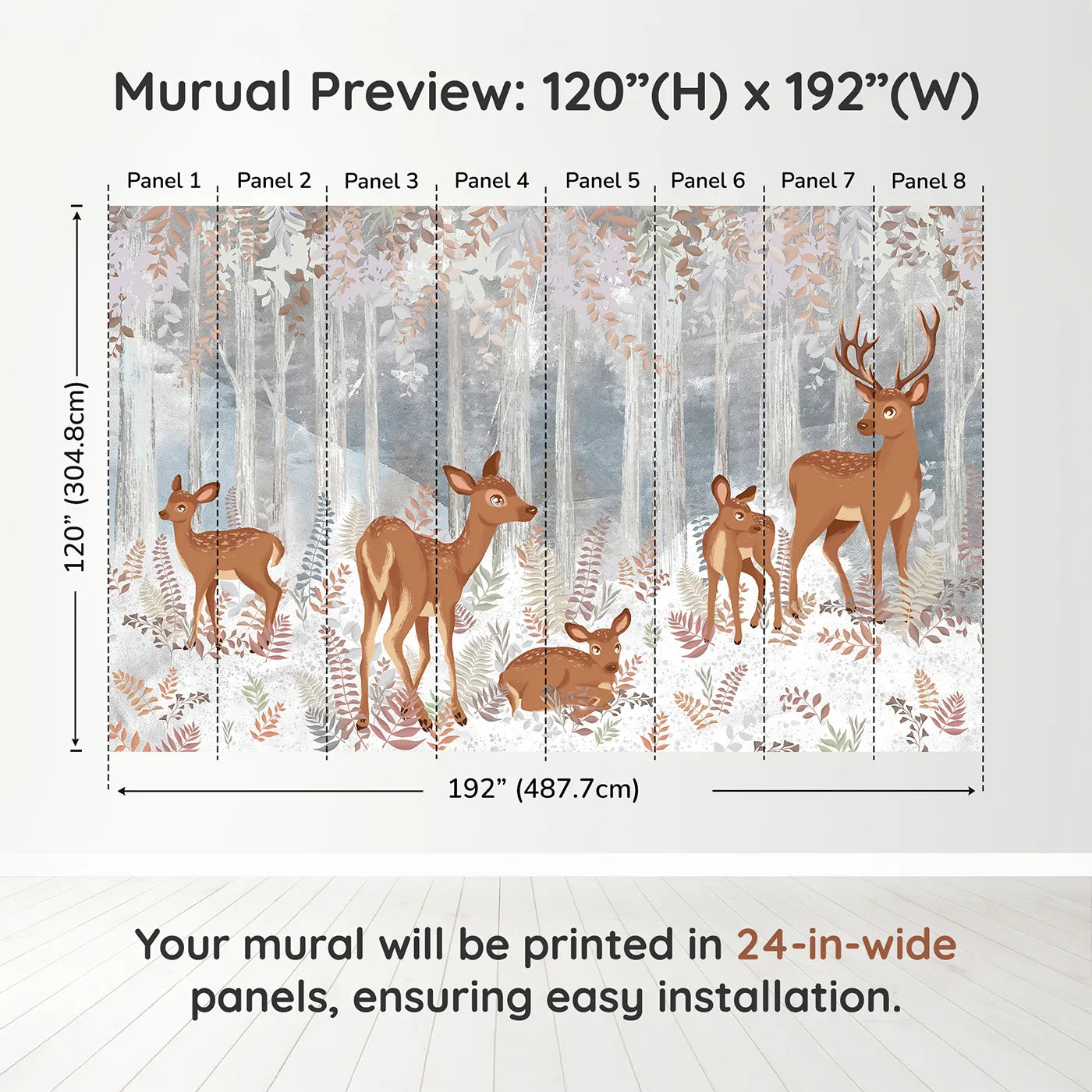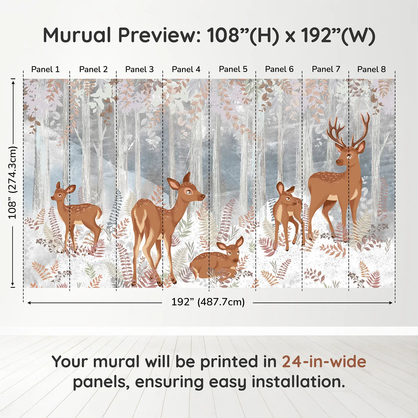 Winter Deer Family Wall Mural - A Cozy Gathering in a Snowy Forest
